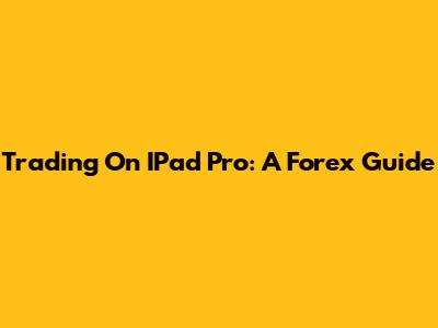 Trading On IPad Pro: A Forex Guide