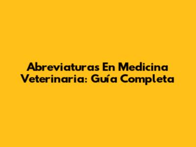 Abreviaturas En Medicina Veterinaria: Guía Completa