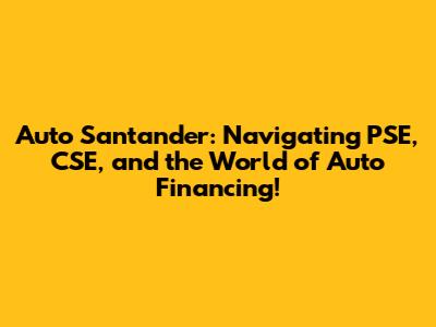 Hey there, car enthusiasts and aspiring drivers! Let's dive deep into the world of Auto Santander, exploring everything from PSE (the Electronic Payment System) to CSE, and other important aspects of auto financing. Figuring out how to get your dream car can seem daunting, but fear not! This guide is designed to break down complex topics into easy-to-understand bits, empowering you to make informed decisions and cruise down the road to your new ride. We'll cover everything, from the basics of Auto Santander's services to tips on navigating the often-tricky process of financing your vehicle. Ready to hit the gas?