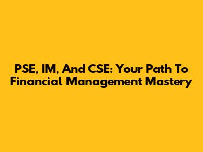PSE, IM, And CSE: Your Path To Financial Management Mastery