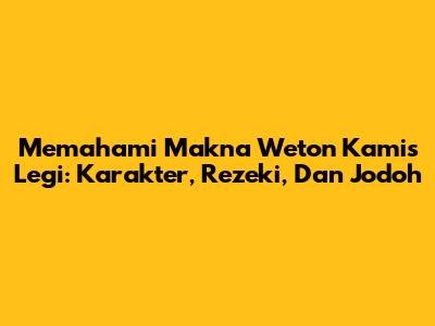 Memahami Makna Weton Kamis Legi: Karakter, Rezeki, Dan Jodoh
