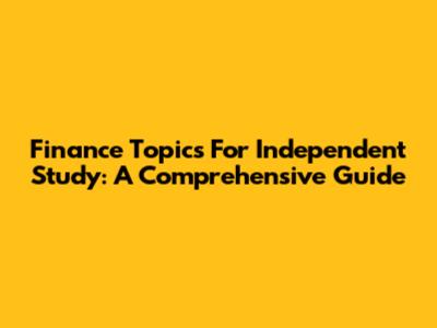 Finance Topics For Independent Study: A Comprehensive Guide