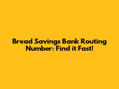Hey guys! Are you looking for the Bread Savings Bank routing number? You've come to the right place! In this article, we'll explain what a routing number is, why you need it, and how to quickly find the Bread Savings Bank routing number. We'll also cover alternative ways to manage your Bread Savings account and answer some frequently asked questions. So, let's dive in!