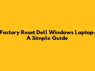 Factory Reset Dell Windows Laptop: A Simple Guide