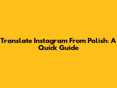 Translate Instagram From Polish: A Quick Guide