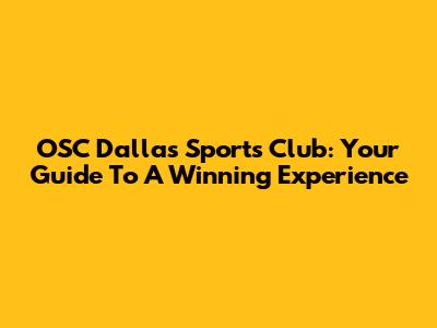 OSC Dallas Sports Club: Your Guide To A Winning Experience