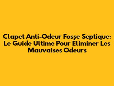Qu'est-ce qu'un Clapet Anti-Odeur pour Fosse Septique ?