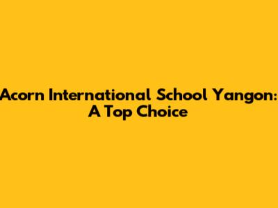 Acorn International School Yangon: A Top Choice