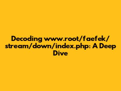 Okay, let's get straight to it. www.root/faefek/stream/down/index.php is a web address, or URL (Uniform Resource Locator), which points to a specific file or resource located on a web server. To truly understand this address, it's essential to dissect its parts. We'll look at the domain, the directory structure, and the file itself to grasp the big picture.