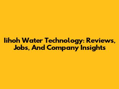 Iihoh Water Technology: Reviews, Jobs, And Company Insights