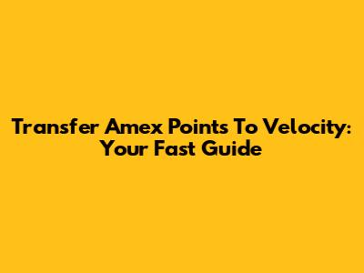 Transfer Amex Points To Velocity: Your Fast Guide