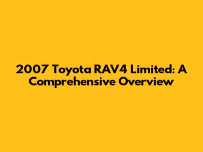 2007 Toyota RAV4 Limited: A Comprehensive Overview