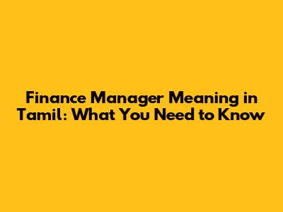 Are you curious about what a finance manager does and what the term means in Tamil? Understanding financial roles can be super helpful, especially if you're navigating the business world or considering a career in finance. Let's break down the meaning of a finance manager, explore their responsibilities, and see how it translates into Tamil.