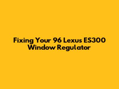 Fixing Your 96 Lexus ES300 Window Regulator