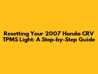 Hey guys! So, you've noticed that annoying TPMS light is on in your 2007 Honda CR-V, and you're wondering how to get rid of it? Don't sweat it! This little light, the Tire Pressure Monitoring System warning, is basically your car's way of telling you that one or more of your tires might be a bit low on air. It’s a safety feature, for sure, designed to help you avoid blowouts and get better gas mileage. But sometimes, this light can be a real pain, especially if it stays on even after you've checked and inflated your tires. Maybe you just rotated your tires, or perhaps you replaced a sensor, and now that darn light is still glowing like a tiny orange beacon of frustration. Well, you've come to the right place! We're going to walk through the process of resetting that TPMS light on your 2007 Honda CR-V, so you can get back to driving with peace of mind and without that distracting glow. It's not as complicated as it might seem, and with a few simple steps, you can often fix it yourself without needing to visit a dealership or a mechanic. We'll cover why the light might be on, what you need to do to address the underlying issue, and then the specific steps for that reset. So, grab a cup of coffee, get comfy, and let's get that TPMS light sorted out for good!