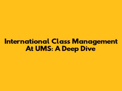 International Class Management At UMS: A Deep Dive