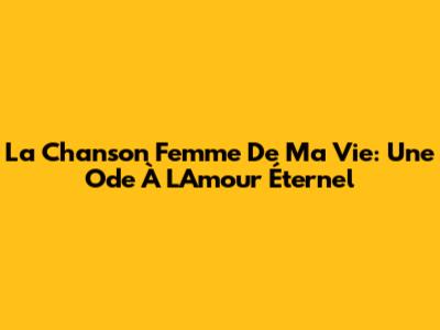 La Chanson 'Femme De Ma Vie': Une Ode À L'Amour Éternel