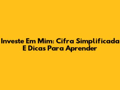 Investe Em Mim: Cifra Simplificada E Dicas Para Aprender