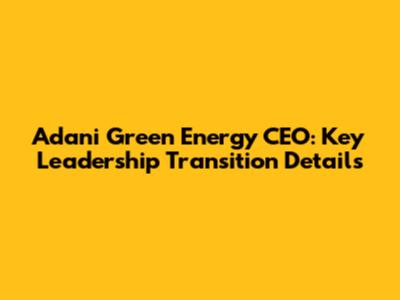 Adani Green Energy CEO: Key Leadership Transition Details