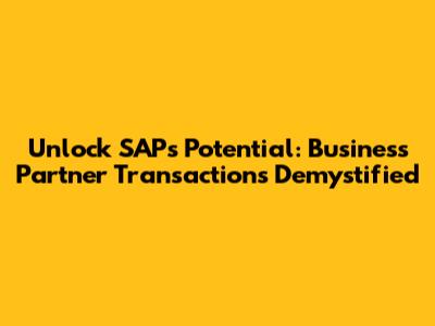 Unlock SAP's Potential: Business Partner Transactions Demystified