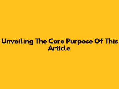 Unveiling The Core Purpose Of This Article
