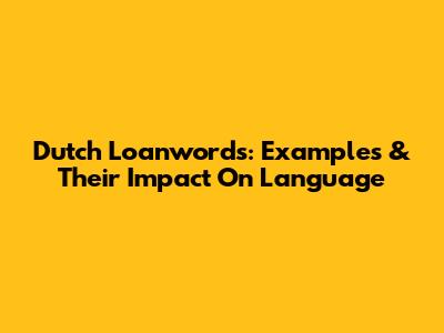 Dutch Loanwords: Examples & Their Impact On Language