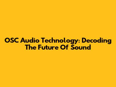OSC Audio Technology: Decoding The Future Of Sound