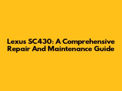 Lexus SC430: A Comprehensive Repair And Maintenance Guide