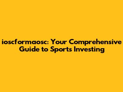 Hey guys! Ever thought about diving into the exciting world of sports investing? It's not just about cheering from the sidelines; it's about making strategic financial plays. In this guide, we're breaking down everything you need to know about ioscformaosc and becoming a savvy sports investor. Whether you're a seasoned investor or just starting, there's something here for everyone.