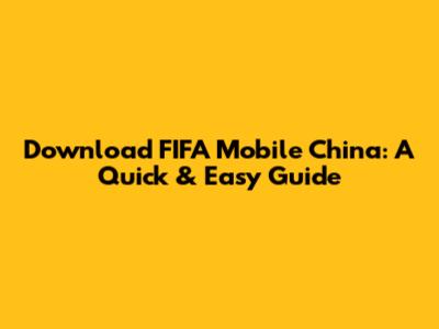Download FIFA Mobile China: A Quick & Easy Guide