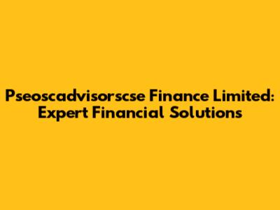 Pseoscadvisorscse Finance Limited: Expert Financial Solutions
