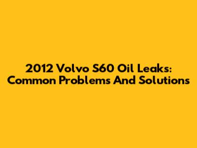 2012 Volvo S60 Oil Leaks: Common Problems And Solutions