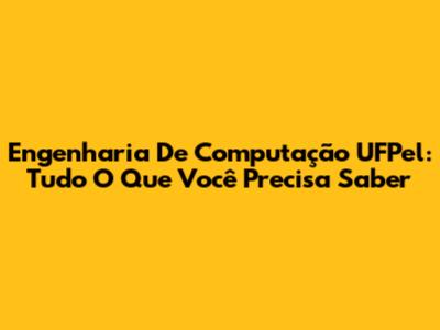 Engenharia De Computação UFPel: Tudo O Que Você Precisa Saber