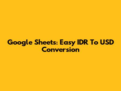 Google Sheets: Easy IDR To USD Conversion