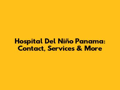 Hospital Del Niño Panama: Contact, Services & More