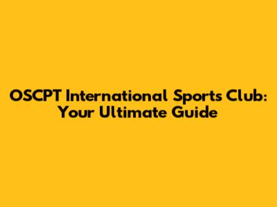 OSCPT International Sports Club: Your Ultimate Guide