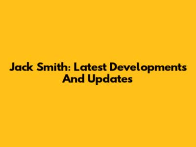 Jack Smith: Latest Developments And Updates