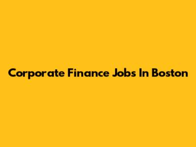 Corporate Finance Jobs In Boston