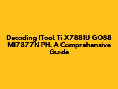 Decoding ITool Ti X7881U GO88 MI7877N PH: A Comprehensive Guide