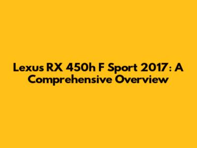 Hey guys! Let's dive deep into the Lexus RX 450h F Sport 2017. This isn't just any SUV; it's a blend of luxury, performance, and eco-friendliness, all wrapped up in a stylish package. If you're considering buying one, or you're just curious about what makes this car tick, you're in the right place. We'll explore everything from its engine and features to its driving experience and how it stacks up against the competition. Get ready for a thorough look at a vehicle that has captured the hearts of many.