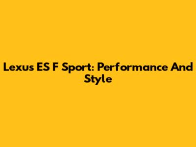 Lexus ES F Sport: Performance And Style