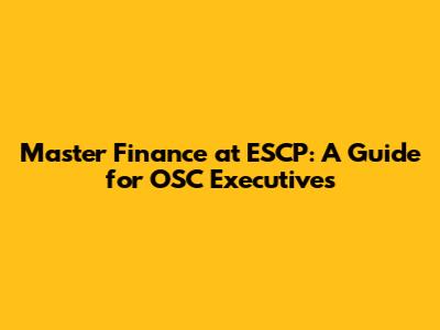 Alright, let's talk about who this program is perfect for. The Master in Finance at ESCP is tailored for ambitious OSC executives who are looking to accelerate their careers and make a significant impact in the finance world.