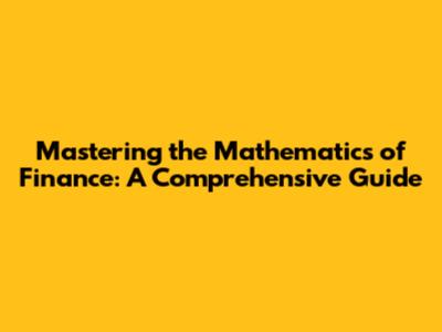 The mathematics of finance might seem intimidating at first, but it's actually a fascinating and rewarding field of study. By understanding the core concepts and how they're applied in the real world, you can gain a significant advantage in managing your finances and achieving your financial goals. So, don't be afraid to dive in and start learning! With a little bit of effort, you can master the mathematics of finance and unlock a world of financial opportunities. Keep learning, keep practicing, and you'll be well on your way to becoming a financial whiz! And remember, the journey of a thousand miles begins with a single step. So, take that first step today and start exploring the exciting world of the mathematics of finance. You'll be amazed at what you can achieve with a little bit of knowledge and dedication. Happy learning, folks!
