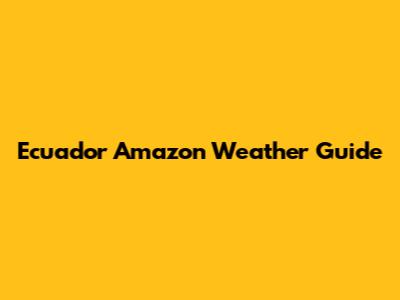 Ecuador Amazon Weather Guide