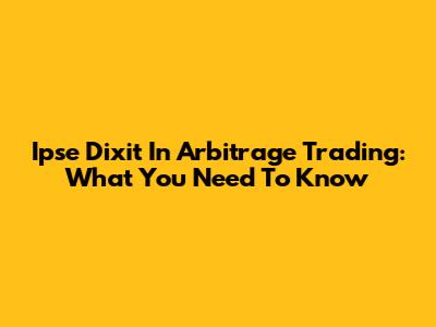 Ipse Dixit In Arbitrage Trading: What You Need To Know