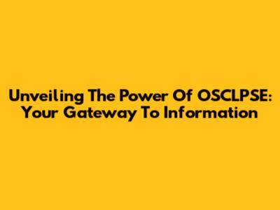 Unveiling The Power Of OSCLPSE: Your Gateway To Information