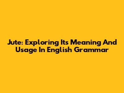 Jute: Exploring Its Meaning And Usage In English Grammar