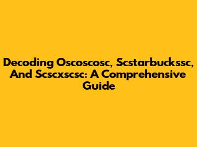 Decoding Oscoscosc, Scstarbuckssc, And Scscxscsc: A Comprehensive Guide
