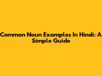 Common Noun Examples In Hindi: A Simple Guide