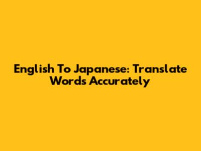 English To Japanese: Translate Words Accurately